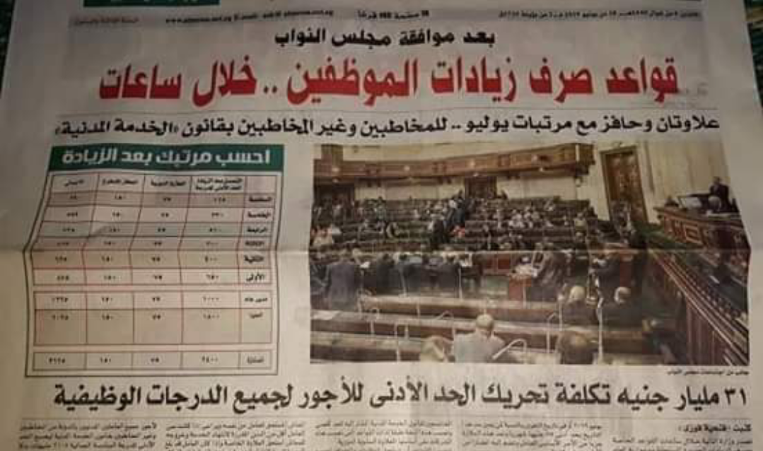 بموافقه مجلس النواب قواعد صرف زيادات الموظفين خلال ساعات و٣١ مليار لرفع الحد الادنى لجميع العاملين بالدولة