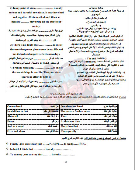 برجرافات للصف الثالث الاعدادى الترم الاول بالمواصفات الجديدة 110 كلمه