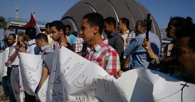 شباب مسلم يهدى الورود للأقباط المتظاهرين أمام ماسبيرو