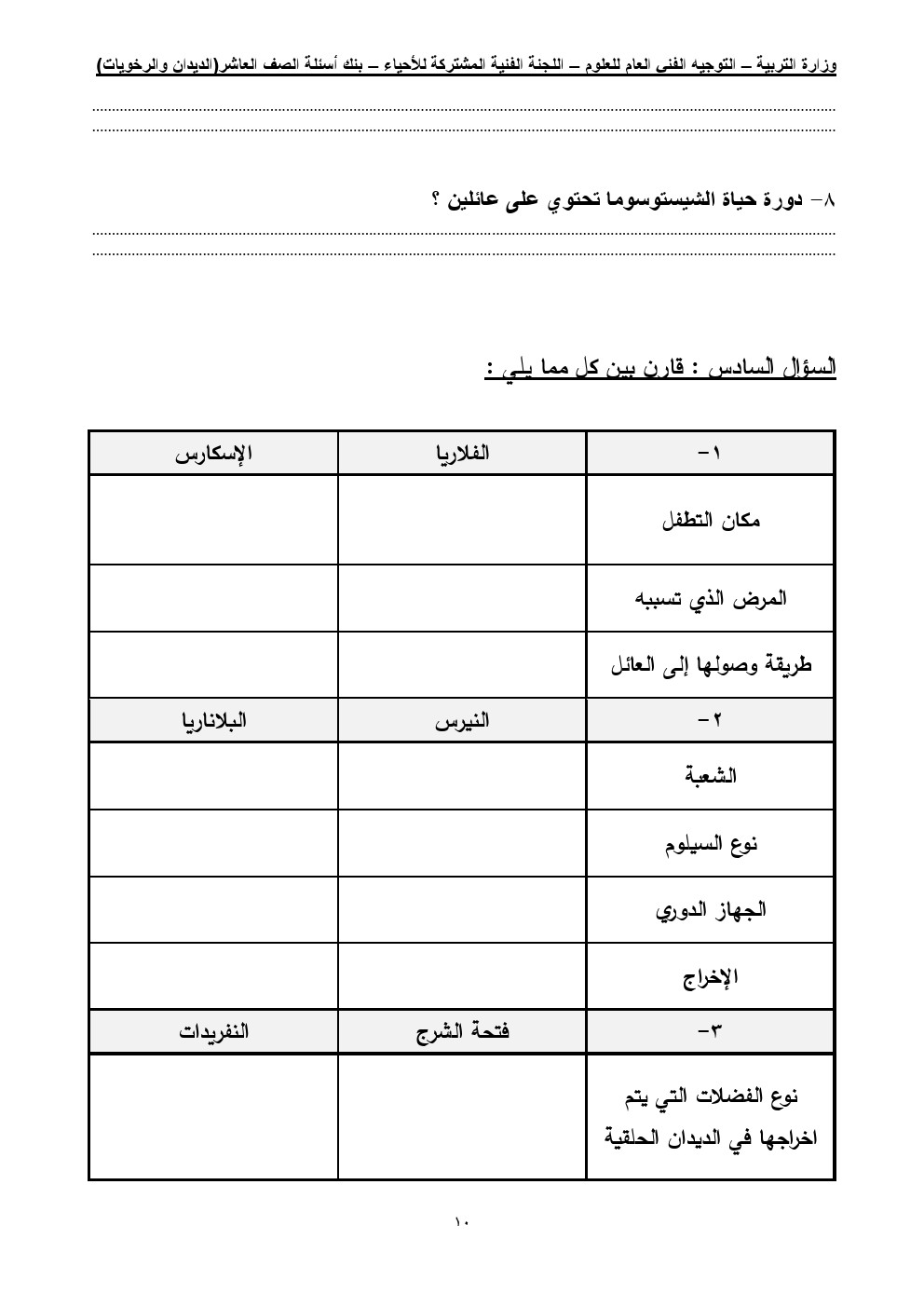 اسئلة الصف العاشر علوم الفصل الثاني ملفات الكويت التعليمية