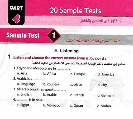 20 امتحان لغة انجليزية للصف الاول الاعدادى ترم أول 2020 وفقا لأحدث مواصفات