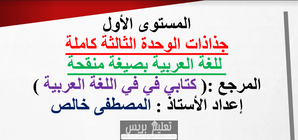 جذاذات الوحدة الثالثة كاملة كتابي في اللغة العربية للمستوى الأول ابتدائي بصيغة معدلة