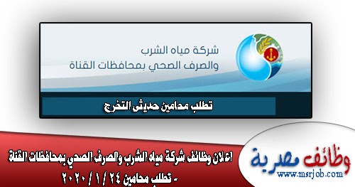 اعلان وظائف شركة مياه الشرب والصرف الصحي بمحافظات القناة تطلب محامين 24 1 2020