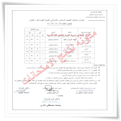 جدول إمتحانات محافظة الاسكندريه الترم الاول 2020 جميع المراحل ابتدائى اعدادى ثانوى