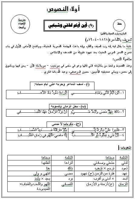 مذكرة لغة عربية للصف الثالث الثانوى التجارى