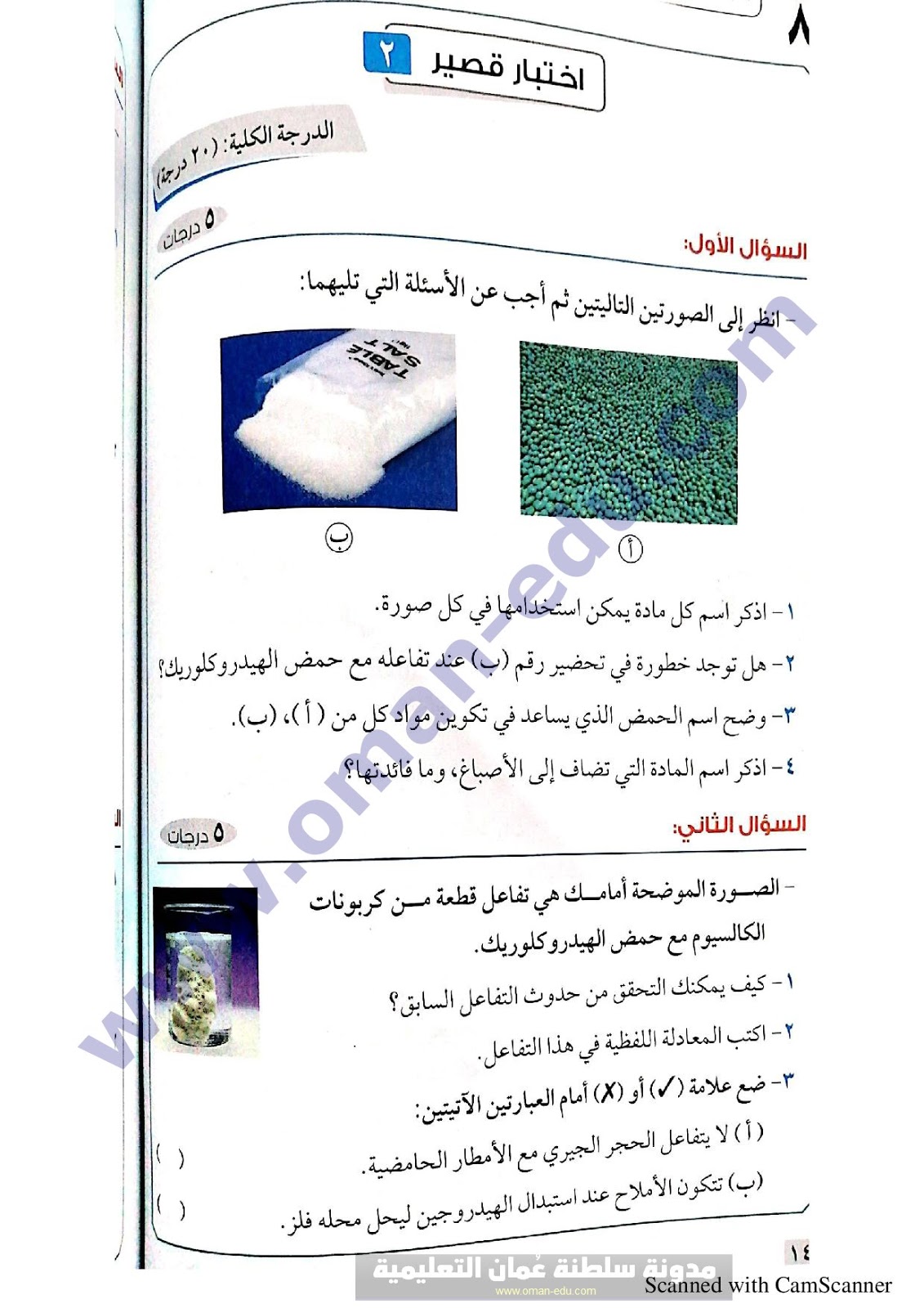 إختبارات قصيرة على الوحدة الثامنة علوم للصف الثامن الفصل الدراسي الثاني